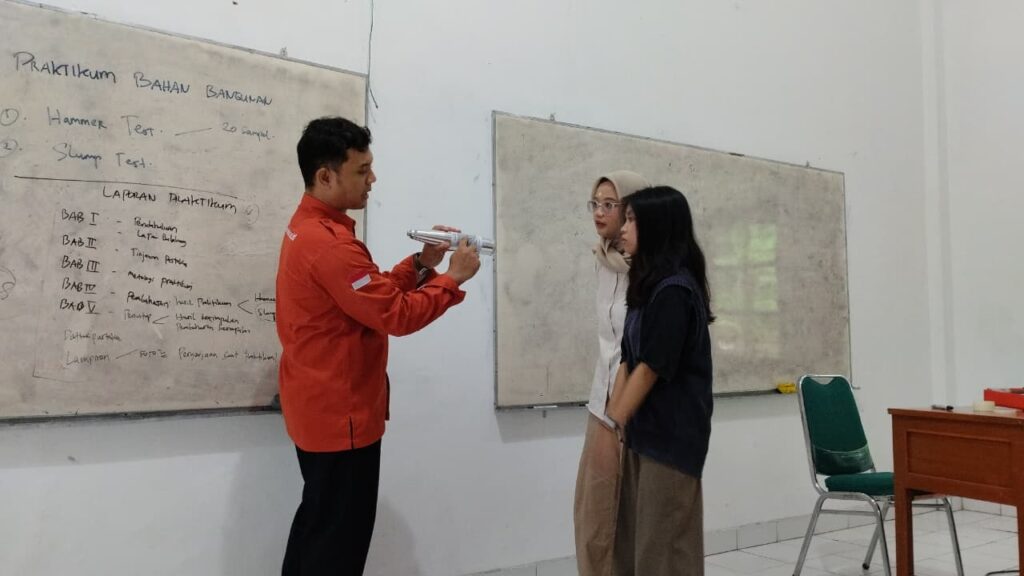 Dosen pengampu, Khoirudin Fakhri, ST., MT., menjelaskan bahwa kombinasi antara pengujian di laboratorium dan pengujian lapangan (NDT) sangat penting bagi calon praktisi teknik sipil.
